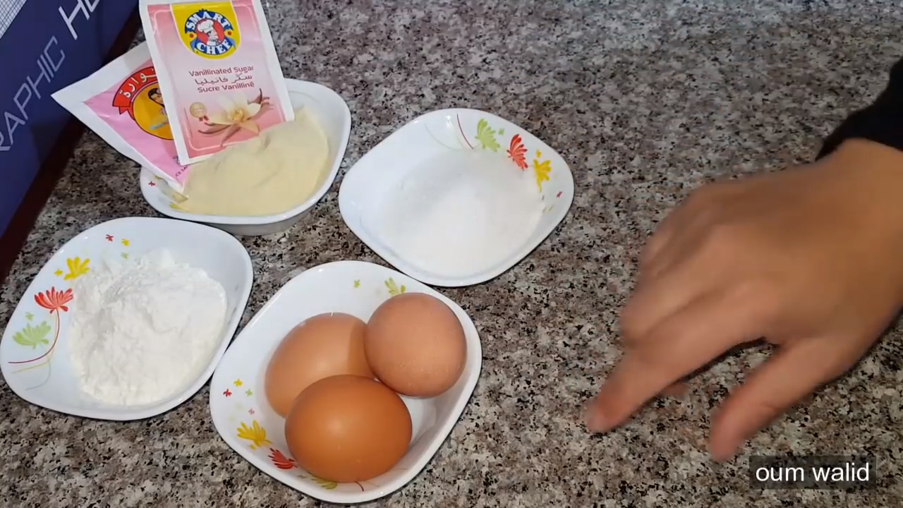 - نخلط جيدا بالـ batteur البيض مع السكر و سكر الفانيليا او اي نوع فانيليا حتى يصبح الخليط مثل الكريمة